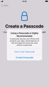 Follow the instructions on the screen to turn on use of phone lock code or press Don't Use Passcode.