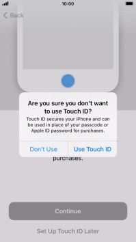 Follow the instructions on the screen to turn on use of Touch ID or press Set Up Touch ID Later.