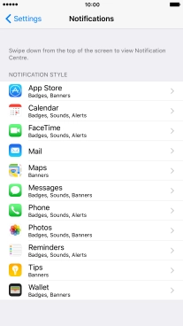 Press the indicator next to "Allow Notifications" to turn notifications for the selected application on or off.