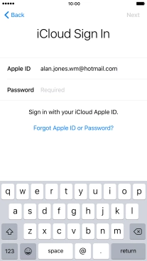 Press the field next to "Apple ID" and key in the username for your Apple ID.