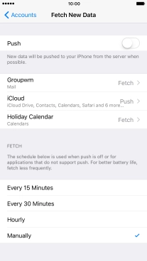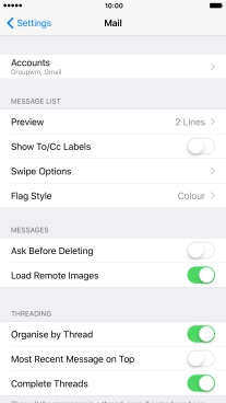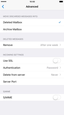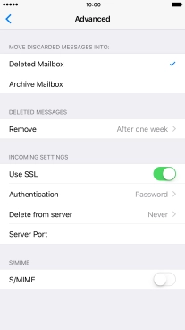 Press the required email account and follow the instructions on the screen to select settings for the specific account.