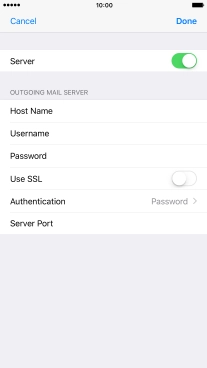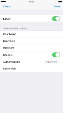 Press Password and key in the password for your email account. Please note that if you're using Vodafone's outgoing server, leave the password field empty.
