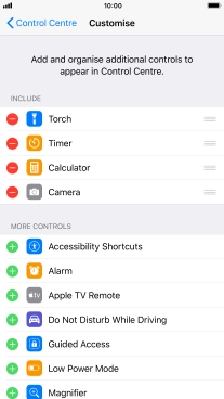 Press the add icon next to the required function to add it to Control Centre.
