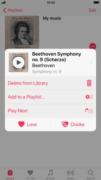 Hard press and hold the required audio file until a pop-up menu is displayed.