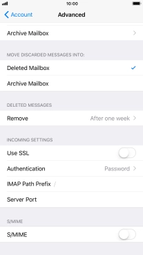 Press the required email account and follow the instructions on the screen to select settings for the specific account.