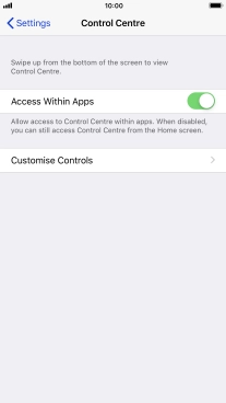 Select settings for Control Centre on your Apple iPhone 7 Plus iOS 12.0