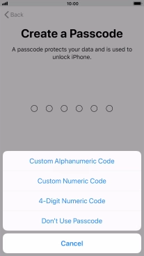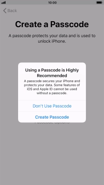 Follow the instructions on the screen to turn on use of phone lock code or press Don't Use Passcode.