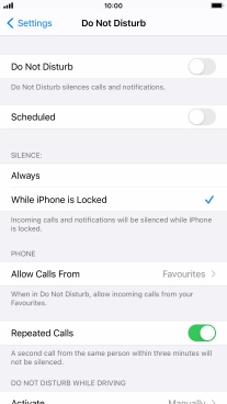 Press the required setting to select which contacts can call you even though Do Not Disturb is turned on.
