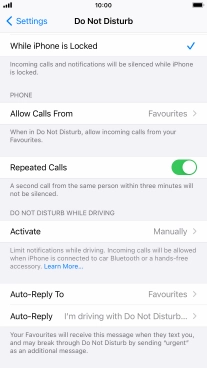 7. Select settings for Do Not Disturb While Driving