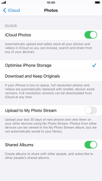 Press the indicator next to "Upload to My Photo Stream" to turn the function on or off.