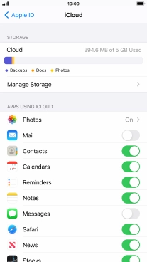 Press the indicator next to "iCloud Drive" to turn file synchronisation on or off.