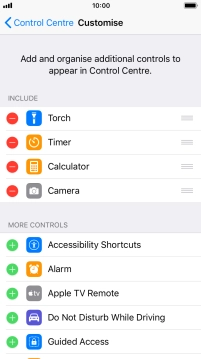 Select settings for Control Centre on your Apple iPhone 8 iOS 11.0