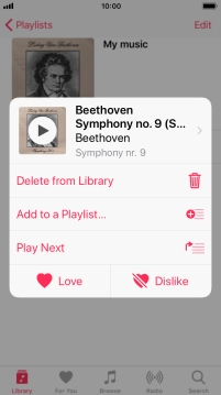 Hard press and hold the required audio file until a pop-up menu is displayed.