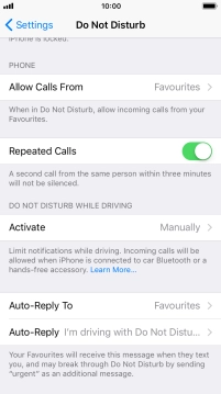 7. Select settings for Do Not Disturb While Driving