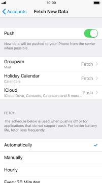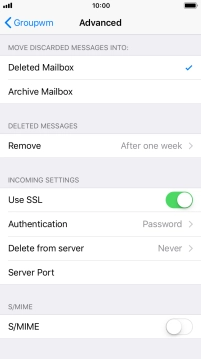 Press the required email account and follow the instructions on the screen to select settings for the specific account.
