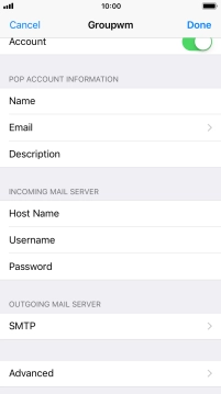 Press Host Name and key in the name or IP address of your email provider's outgoing server. Please note that if you can't send email messages when using your email provider's outgoing server, key in smtp.vodafone.net.au (Vodafone's outgoing server).