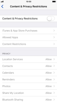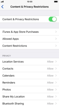 Press the indicator next to "Content & Privacy Restrictions" and follow the instructions on the screen to select settings for content and privacy restrictions.