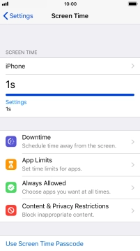 Select Screen Time settings on your Apple iPhone 8 iOS 12.0