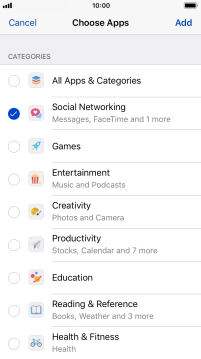 Press the add icon next to the required app to add it to the list of allowed apps during Downtime.