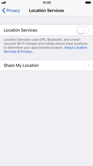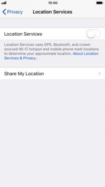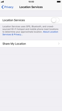 Press the indicator next to "Location Services" to turn the function on or off.