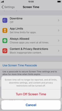 Press Turn Off Screen Time.
