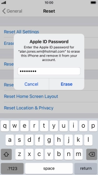 Key in the password for your Apple ID and press Erase. Wait a moment while the factory default settings are restored. Follow the instructions on the screen to set up your phone and prepare it for use.