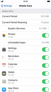 Press the indicator next to "Mobile Data" to turn the function on or off.