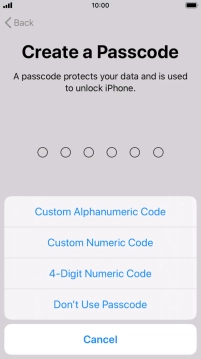 Follow the instructions on the screen to turn on use of phone lock code or press Don't Use Passcode.
