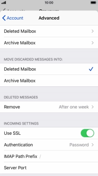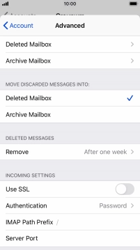 Press the required email account and follow the instructions on the screen to select settings for the specific account.