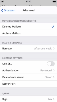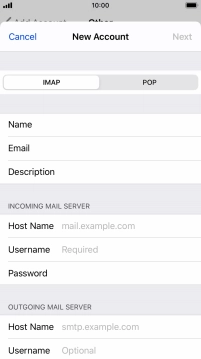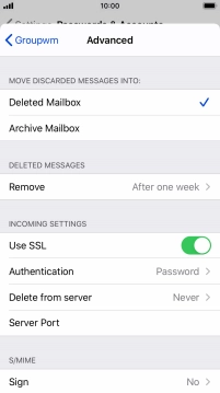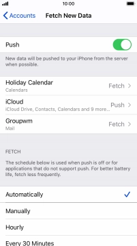 Press the required email account and follow the instructions on the screen to select settings for the specific account.