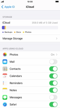 Press the indicator next to "iCloud Drive" to turn file synchronisation on or off.
