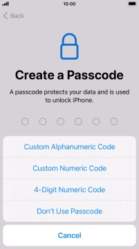 Follow the instructions on the screen to turn on use of phone lock code or press Don't Use Passcode.