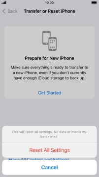 Press Reset All Settings. Wait a moment while the factory default settings are restored. Follow the instructions on the screen to set up your phone and prepare it for use.