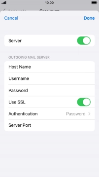 Press Password and key in the password for your email account. Please note that if you're using Vodafone's outgoing server, leave the password field empty.