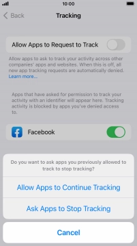 Press the indicator next to "Allow Apps to Request to Track" to turn the function on or off.