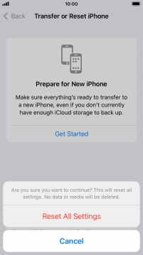 Press Reset All Settings. Wait a moment while the factory default settings are restored. Follow the instructions on the screen to set up your phone and prepare it for use.