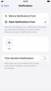 Press the indicator next to "Time-Sensitive Notifications" to turn display of timed notifications on or off when Do Not Disturb is turned on.