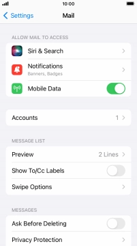 Press the required email account and follow the instructions on the screen to select settings for the specific account.