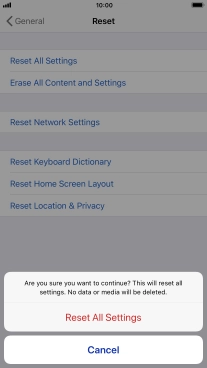 Restore factory default settings on your Apple iPhone 8 Plus iOS 12.0