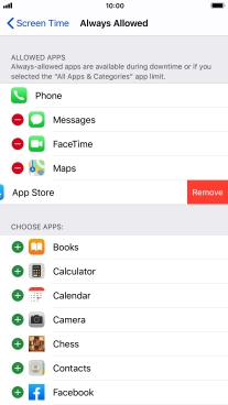 Press the remove icon next to the required app to remove it from the list of allowed apps during Downtime.