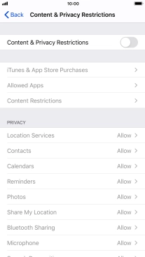 Press the indicator next to "Content & Privacy Restrictions" and follow the instructions on the screen to select settings for content and privacy restrictions.