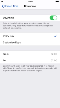 Press the indicator next to "Downtime" and follow the instructions on the screen to select Downtime period.