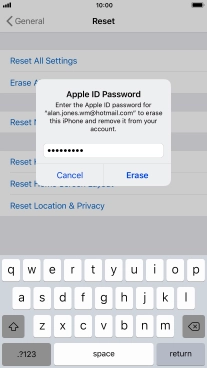 Key in the password for your Apple ID and press Erase. Wait a moment while the factory default settings are restored. Follow the instructions on the screen to set up your phone and prepare it for use.