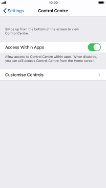 If you turn on the function, Control Centre can be used both on the home screen and while using other applications.