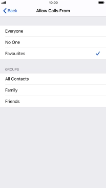 Press the required setting to select which contacts can call you even though Do Not Disturb is turned on.