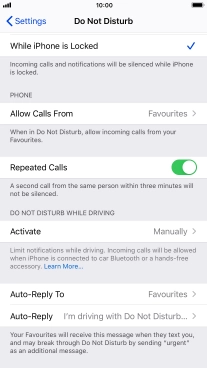 7. Select settings for Do Not Disturb While Driving