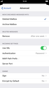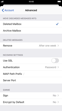 Press the required email account and follow the instructions on the screen to select settings for the specific account.