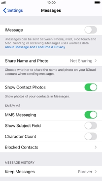 Press the indicator next to "MMS Messaging" to turn on the function.
