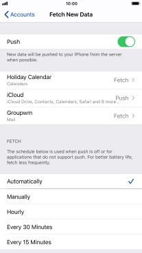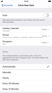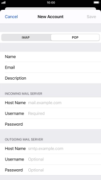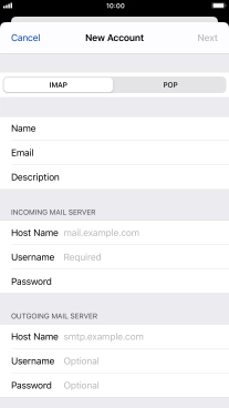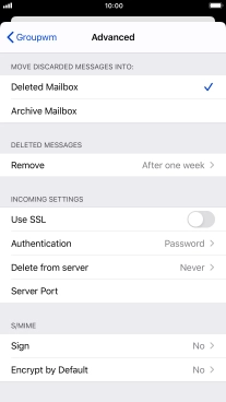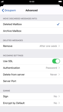 Press the required email account and follow the instructions on the screen to select settings for the specific account.