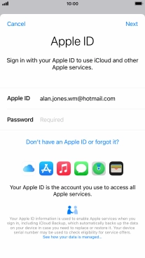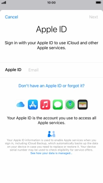 If you don t have an Apple ID, press Don't have an Apple ID or forgot it? and follow the instructions on the screen to create an Apple ID.